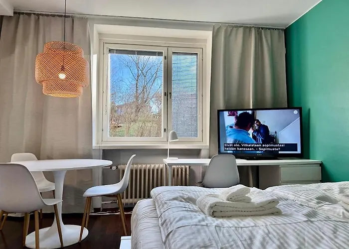 Den här 25 m² stora lägenheten ligger i distriktet Meilahti, en kort bit från Fölisö friluftsmuseum. Gästerna kommer att bo mindre än 1 km från Helsingfors Olympiastadion. Tranan har landat kan enkelt nås från Studio May, Your Home Away From Home mindre än 450 meter bort.